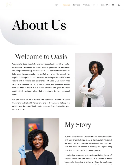 Oasis Facials is a boutique skincare clinic specializing in personalized facial treatments, including microdermabrasion, chemical peels, and dermaplaning. Located in a serene environment, Oasis Facials aims to provide clients with a luxurious experience that leaves their skin feeling refreshed and rejuvenated. The clinic approached us to design a website that would reflect their commitment to high-quality skincare and attract a sophisticated clientele.