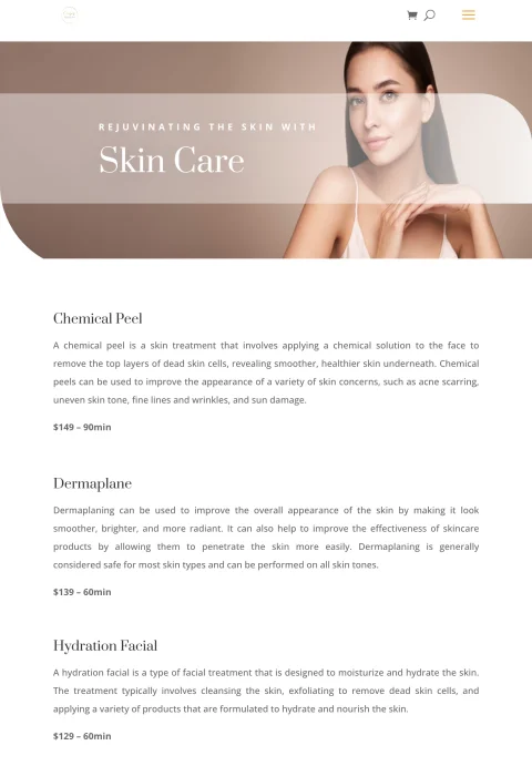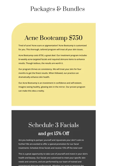 Service Highlighting: To clearly showcase the range of facial treatments offered, making it easy for clients to understand the benefits of each service.
